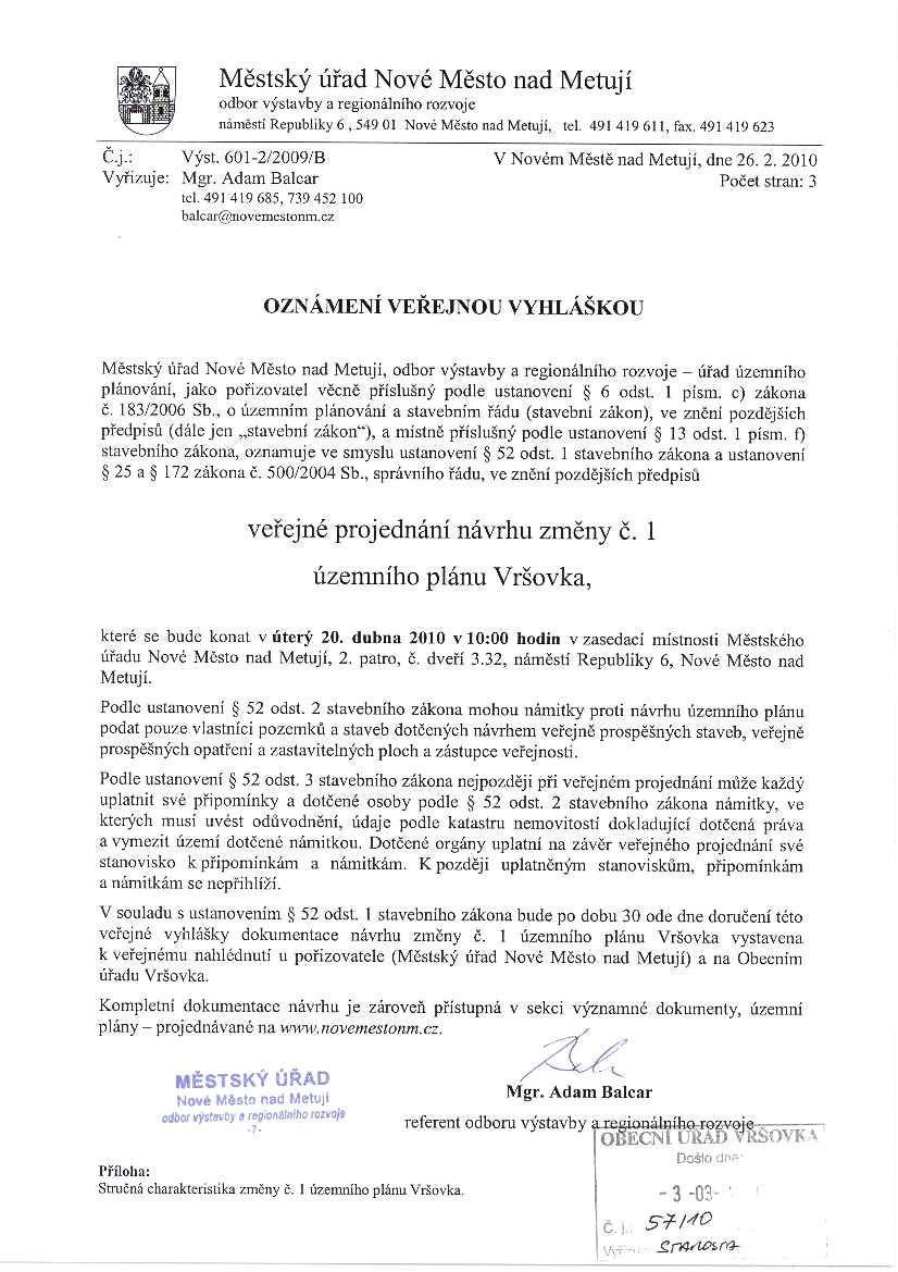 Územní plán -změna č.1 územního plánu